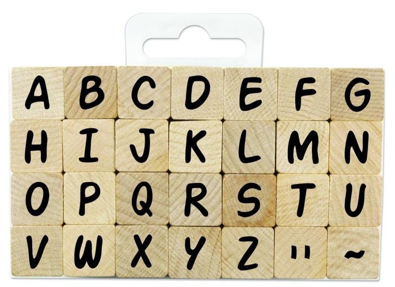 Wooden alphabet stamps. Height of letters: 0.85 cm. The deep texture of the stamp ensures perfect printing. They are suitable for making cards, art journals, messages, and are especially good for materials like ceramics, polymers, and modeling clays.