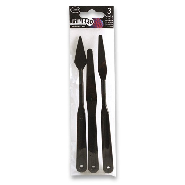 Set of artistic spatulas. Made from flexible plastic. The spatulas are designed for applying pastes, paints, and materials over a stencil or freely by hand. The package includes 3 types of spatulas.