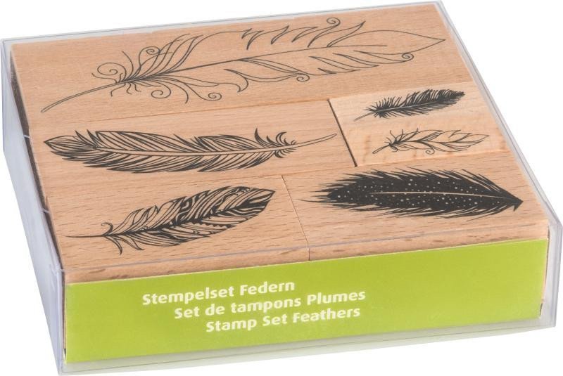A set of 15 wooden stamps with twig motifs. Simply apply color using a stamp pad and stamp - only on the rubber part; if you paint the wood as well, it may also imprint and disrupt the final effect. After finishing stamping, rinse with warm water.