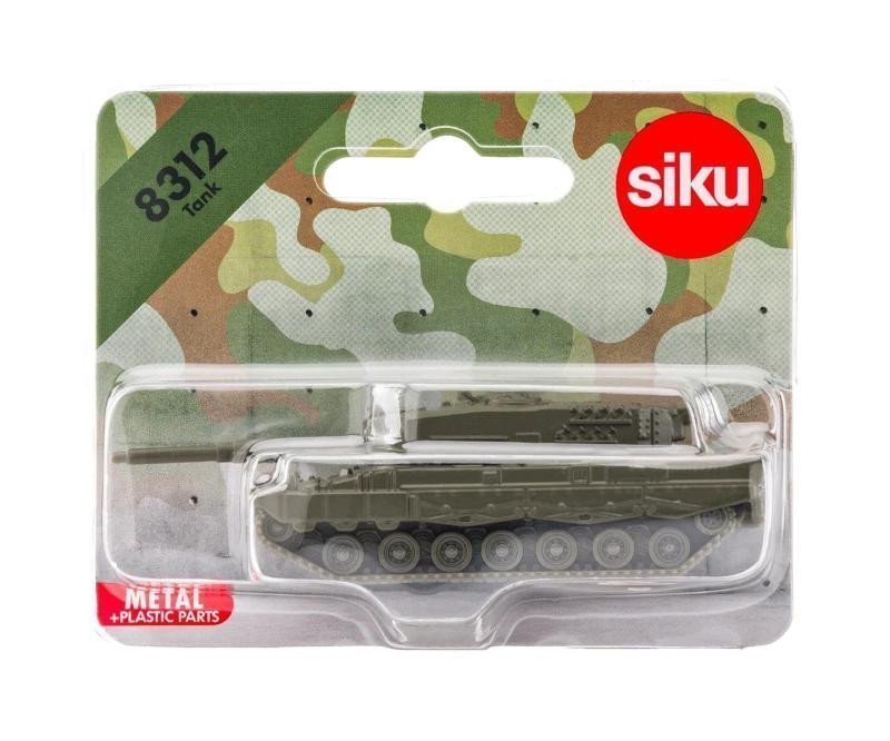 A faithful original replica of a military tank. This SIKU model in classic military green features realistic details and is made from die-cast metal and plastic components. SIKU models do not contain any PVC and meet international safety standards for toys. The military tank model has movable elements. Model dimensions: 2.5 x 3 x 8.5 cm. Packaging dimensions: 7.8 x 9.7 x 3.7 cm. Packaged in a blister. Age: 3+