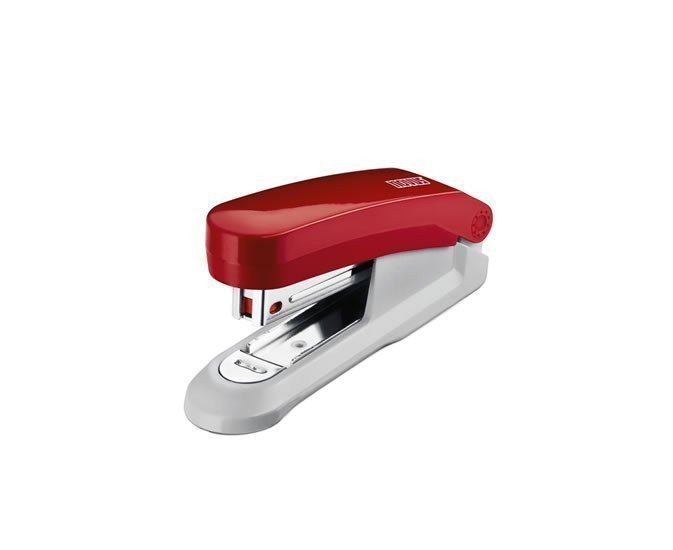 A small stapler ideal for travel use. All-metal stapler with a partial top plastic cover. Integrated metal staple remover. Top loading with simple staple guidance. Max. paper insertion depth 37 mm. Capacity: 100 pieces of No. 10 staples. Weight: 86 g. Pack includes 200 No. 10 SUPER staples. Extended warranty: 10 years.