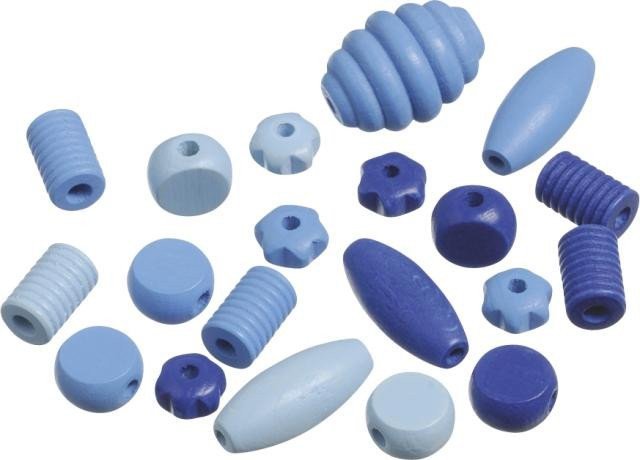 Dřevěné korálky mix různé tvary - modrá 20 ks