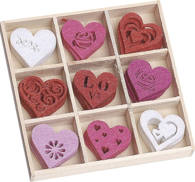 HEYDA Sada filcových dekorací v krabičce - srdce