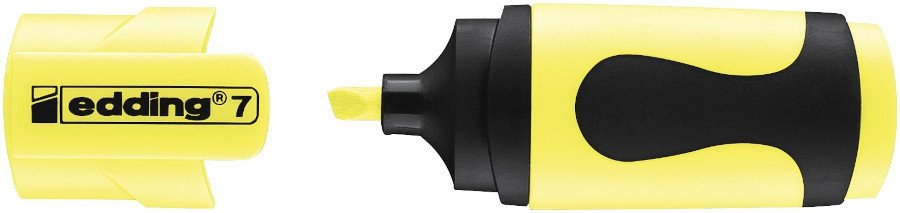 The mini edding 7 highlighter in pastel colors features water-based ink that does not smudge. Its small size takes up little space in a pencil case, backpack, or laptop bag, making it an ideal travel companion. The non-slip grip improves handling of the highlighter. The cap is equipped with a clip. It is also suitable for small children's hands. Chiseled tip. Line width: 1-3 mm.