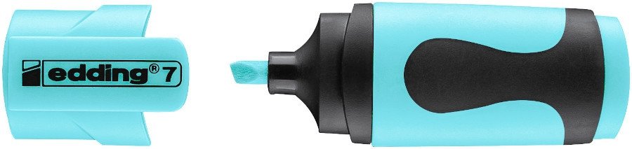 The mini edding 7 highlighter in pastel colors features water-based ink that does not smudge. Its small size takes up little space in a pencil case, backpack, or laptop bag, making it an ideal travel companion. The non-slip grip improves handling of the highlighter. The cap is equipped with a clip. It is also suitable for small children's hands. Chiseled tip. Line width: 1-3 mm.