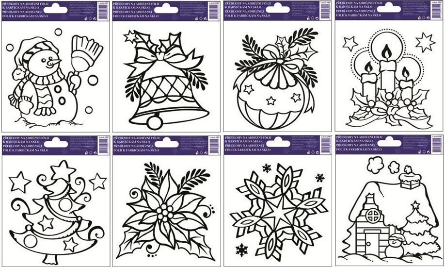 Templates for painting on glass with raised contours ADHESIVE FOIL ELECTROSTATICALLY ADHERES TO THE SURFACE! Color it in and after drying, place it on clean or slightly damp glass, mirrors, etc. You can color it with glass paints, markers, watercolor paints, etc.