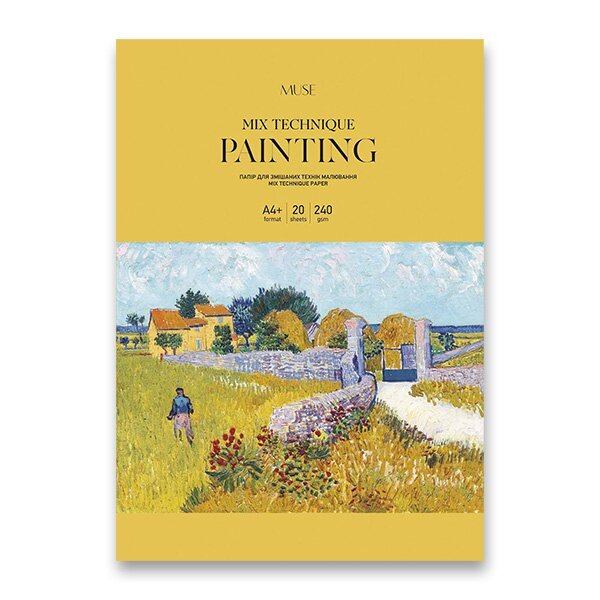 White drawing cardboard (commonly known as 'quarter') in A4+ format (225 x 315 mm). The Mix Technique Painting series (240 g paper) is suitable for a wide range of artistic techniques from pen, pastel to watercolor or acrylic paints. Individual sheets of cardboard are stored in cardboard covers with artistic motifs.