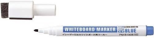 Erasable whiteboard marker with a sponge and magnet in the cap, round extra fine tip, suitable for school boards, ink trail with a prominent 1-2 mm, eraser for quick corrections, compact size with cap, round body, length 12 cm, diameter 1 cm, color blue.