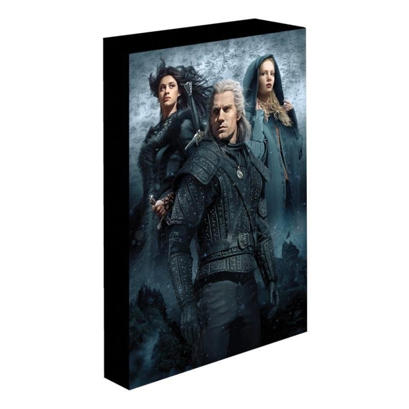 A glowing picture measuring 30x40 with a licensed motif from the Witcher series. The light requires 3 AA batteries to operate, which are not included in the package.
