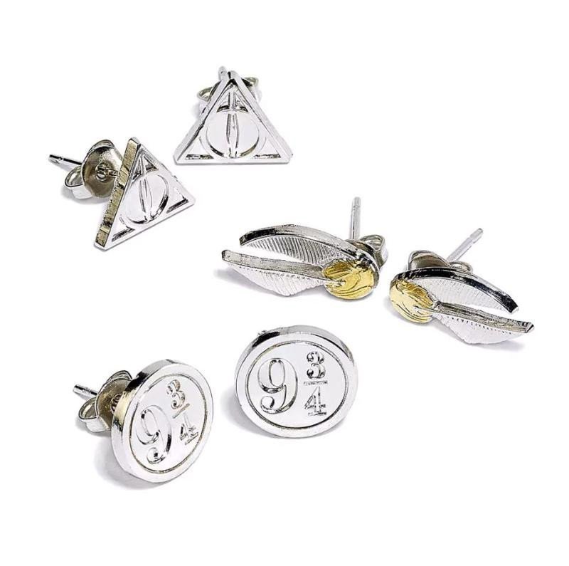 Harry Potter Náušnice 3 páry - Relikvie smrti, Zlatonka, Nástupiště 9 3/4