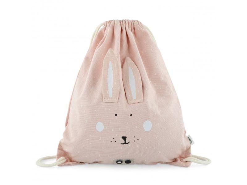 A fun and practical drawstring bag for gym class, slippers, or swimming gear. Material: 100% cotton. Lining: 95% cotton 5% PES. Size: 34 cm x 40 cm. Features: 2 practical drawstrings for easy opening and closing of the bag. Inner pocket for keys, money, or membership card. Water-repellent coating. Name tag inside.