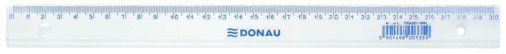 Transparent ruler - durable, made of rigid polystyrene that does not deform. Standardized scale with a slanted edge for comfortable drawing. Ruler length: 30 cm.