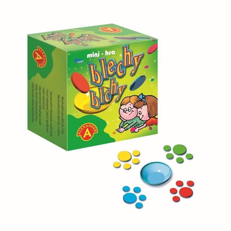 Ein lustiges Taschenspiel, das eure Geschicklichkeit auf die Probe stellt. Für bis zu 4 Spieler ab 5 Jahren. Ein unvergesslicher Klassiker, der nicht nur in den Schulpausen, sondern auch bei Erwachsenen für beste Unterhaltung sorgt. Wer als Erster alle seine Flöhe in die Schüssel befördert, gewinnt! Komplettes Set für 4 Spieler. Die Spieler müssen mit einem großen Spielstein auf den Rand eines kleineren Spielsteins (des Flohs) drücken, um den Floh zum Ziel – der Schüssel – zu befördern. Die richtige Richtung erfordert etwas Geschick und Übung. Wer es schafft, alle seine Flöhe in die Schüssel zu befördern, ist der Flohmeister! Das Set enthält: eine große Schüssel (Ziel), 4 Flohsets in 4 Farben, 4 große Abschuss-Spielsteine sowie eine Spielanleitung in Tschechisch und Slowakisch. FLÖHE MINI – Spielvorbereitung: Jeder Spieler erhält 4 kleine Flöhe und 1 großen Floh (Plastikscheibe) in der gleichen Farbe. Die Schüssel wird in der Mitte zwischen den Spielern platziert. Spielablauf und Ziel: Das Spiel beginnt mit dem jüngsten Spieler. Dieser platziert einen kleinen Floh in einem vereinbarten Abstand zur Schüssel auf dem Boden oder Tisch. Sie versuchen, die kleinen Flöhe in die Schüssel zu „befördern“, indem sie die große Scheibe auf den Rand des Flohs drücken. Ziel des Spiels ist es, alle Flöhe in die Schüssel zu befördern. Jeder Spieler hat pro Runde drei Versuche, einen ausgewählten Floh in die Schüssel zu „schießen“. Fällt ein Floh nicht in die Schüssel, darf der Schuss wiederholt werden, jedoch nur von der Stelle, von der er gefallen ist.