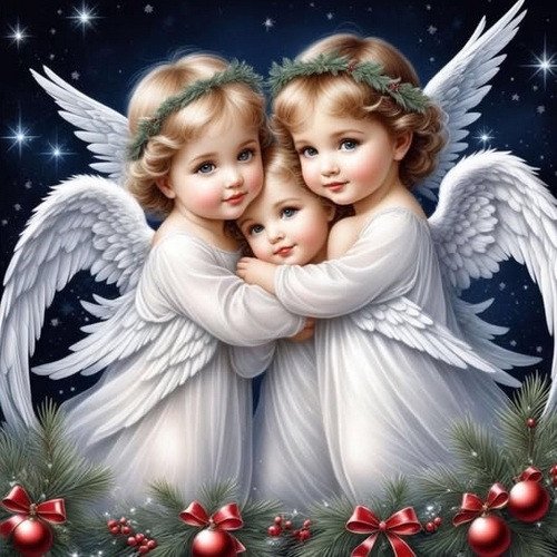Diamantový obrázek - Tři malí andílci 30x40 cm