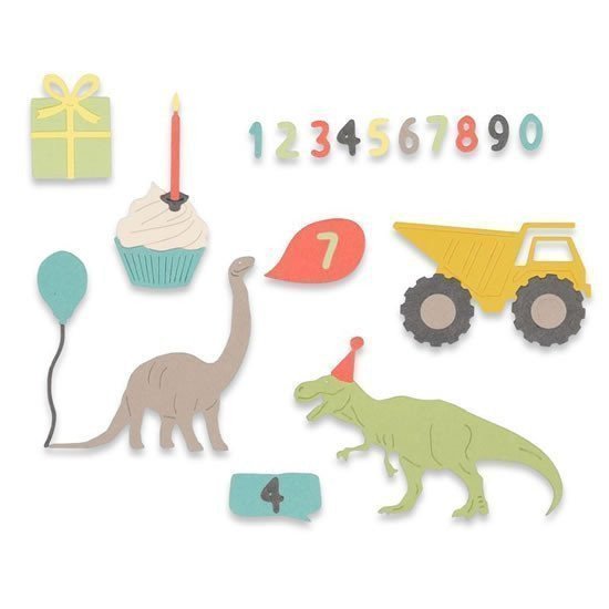 SIZZIX Thinlits vyřezávací kovové šablony - narozeniny kluci 15 ks