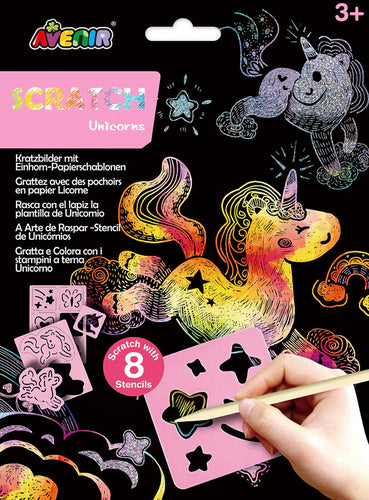 Ein tolles Bastelset für kleine Kinder. Dieses unterhaltsame Set kombiniert Kratztechniken und Schablonen. Mit 8 Schablonen und vielen verschiedenen Motiven lassen sich zauberhafte Bilder gestalten. Alter: ab 3 Jahren