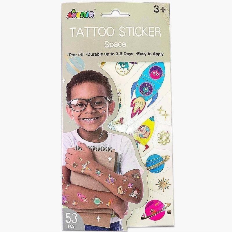 Original temporary tattoos for kids, suitable for both girls and boys, featuring various appealing designs - space. Fun for kids and their friends and family.