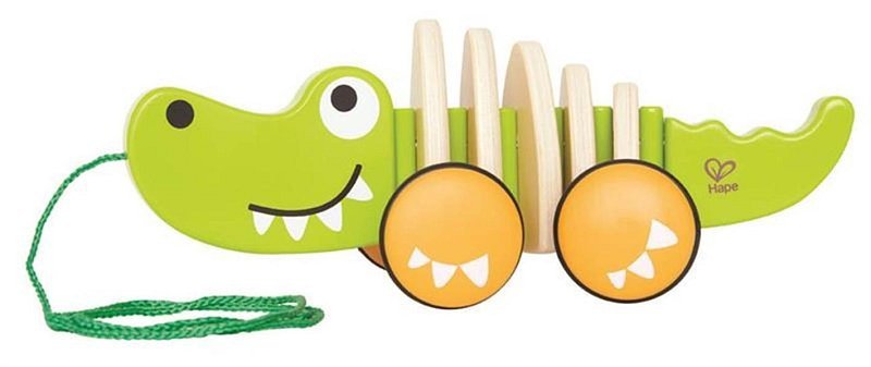 Every toddler should have a pull toy that motivates them to crawl and take their first steps. Such a pull toy can be the cute crocodile from the British brand Hape. When the crocodile moves, its body undulates and its tail wags, further enhancing children's motor skills. Its colorful design also stimulates imagination and creativity. The toy is made from high-quality and durable wood and features a modern design. It is suitable for children from one year old. Key features of the Hape pull toy crocodile: Motivates first steps, features a undulating body when moving, modern design to support imagination, made from quality wood, suitable for children from 1 year old. Weight: 100 g. Dimensions (L × W × H): 27 × 15 × 18 cm. Packaging dimensions (L × W × H): 29.5 × 11 × 10.8 cm.