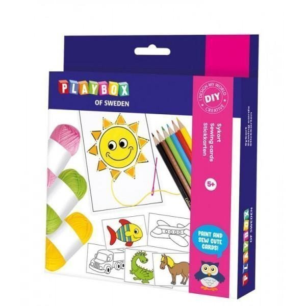 Coloring set with embroidery, includes: x picture for embroidery, 6x colored pencils, 3x threads, 1x plastic needle, instructions. Not suitable for children under 3 years.