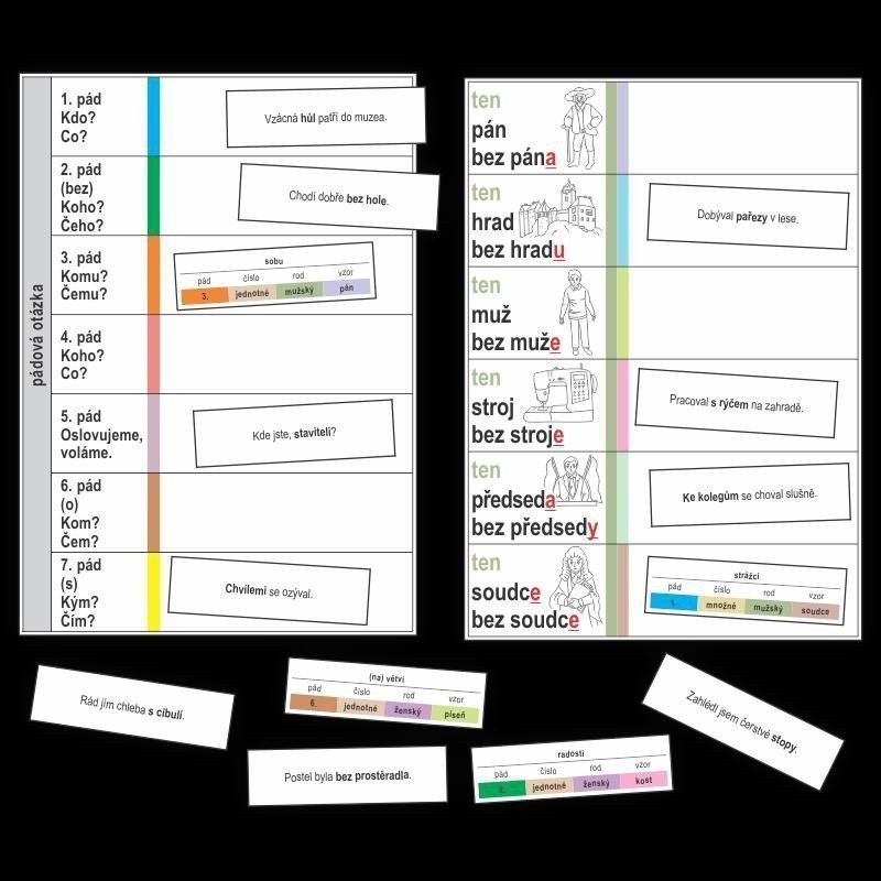 Podstatná jména - kartičky k procvičování určování mluvnických kategorií u podstatných jmen