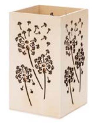 Eine hölzerne Laterne, die für eine stimmungsvolle Atmosphäre sorgt. Sie können sie naturbelassen verwenden, um die Schönheit des Holzes hervorzuheben, oder sie mit Acrylfarben bemalen oder mit Servietten und Reispapier in Decoupage-Technik verzieren. Geeignet für Teelichter oder Lichterketten. Maße: 17 x 10 x 10 cm.