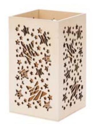 Eine hölzerne Laterne, die für eine stimmungsvolle Atmosphäre sorgt. Sie können sie naturbelassen verwenden, um die Schönheit des Holzes hervorzuheben, oder sie mit Acrylfarben bemalen oder mit Servietten und Reispapier in Decoupage-Technik verzieren. Geeignet für Teelichter oder Lichterketten. Maße: 17 x 10 x 10 cm.