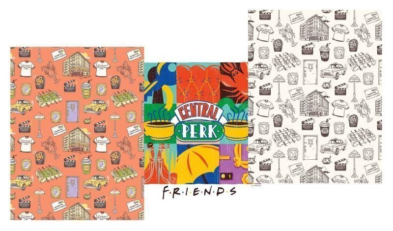 Officially licensed FRIENDS product: The high-quality prints on this FRIENDS product make it a perfect gift for anyone, anywhere. Whether it's for joy, a special occasion, or Christmas or birthdays. The package includes 3 pieces of waxed napkins measuring 30 x 35 cm, 25 x 25 cm, 15 x 15 cm. Material: 100% beeswax, 100% cotton certified by OEKOTEX.
