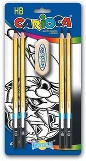 Set of triangular graphite pencils Carioca Black. The set includes 4 pencils with HB hardness leads and an eraser. High-quality lead, resistant to falling. Easily erasable and sharpenable. Suitable for schools and offices. Not suitable for children under 3 years.