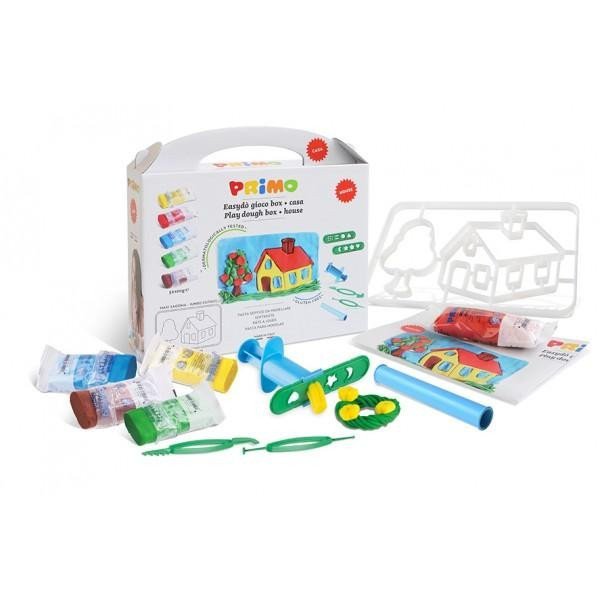 The PRIMO gift creative set of modeling clay and crafting accessories is stored in a practical, sealable cardboard suitcase. The set includes: 5x 100g modeling clay, 1x silhouette cookie cutter, 6x modeling accessories, PVC mat. The modeling clay is excellently moldable, elastic, pleasant to the touch, and does not stain hands. The colors are rich and bright. After opening, store the modeling clay in an airtight container to prevent it from drying out.