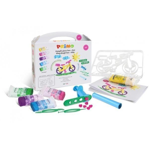 The gift creative set of PRIMO modeling clay and crafting accessories is stored in a practical, sealable cardboard suitcase. The set includes: 5x 100g modeling clay, 1x silhouette cutter, 6x modeling accessories, PVC mat. The modeling clay is excellently moldable, elastic, pleasant to the touch, and does not stain hands. The colors are rich and bright. After opening, store the modeling clay in an airtight container to prevent it from drying out.