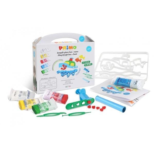 The gift creative set of PRIMO modeling clay and crafting accessories is stored in a practical, sealable cardboard suitcase. The set includes: 5x 100g modeling clay, 1x silhouette cutter, 6x modeling accessories, PVC mat. The modeling clay is excellently moldable, elastic, pleasant to the touch, and does not stain hands. The colors are rich and bright. After opening, store the modeling clay in an airtight container to prevent it from drying out.
