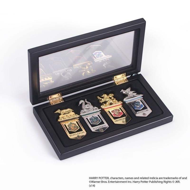 Set of 4 bookmarks featuring the crests and mascots of the Hogwarts houses in a collector's box. Dimensions: 16 x 9 cm