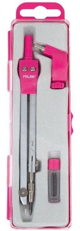 Metal compass MILAN, ACID series, pink, with a folding leg. The package includes an adapter for technical markers, two spare leads.
