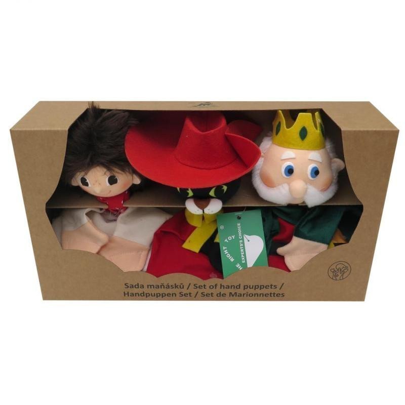 Set of 3 puppets in a gift box. Clean only the surface. Handmade in the Czech Republic. WARNING: Not suitable for children under 3 years, contains small parts and small balls, risk of choking or suffocation.
