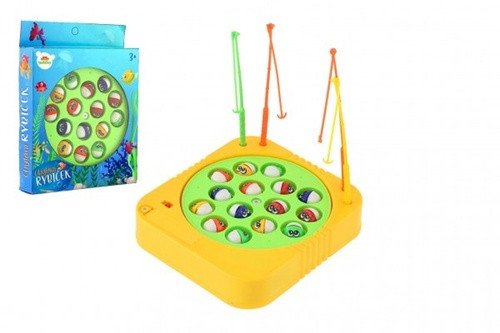 Lass dich vom spannenden Angelabenteuer mitreißen! Dieses tolle Spiel entführt dein Kind direkt in die Tiefen von Seen, Meeren und Ozeanen. Das Fangen kleiner Fische sorgt für jede Menge Spaß bei Groß und Klein. Drehe den Teich und fange so viele Fische wie möglich! Die Fische öffnen und schließen ihr Maul – du musst also den richtigen Moment abpassen, um sie an den Haken zu bekommen. Wer die meisten Fische gefangen hat, gewinnt. Wer wird es sein? Spielgröße: 16 x 17 cm. Durchmesser des Spielfelds: 14 cm.