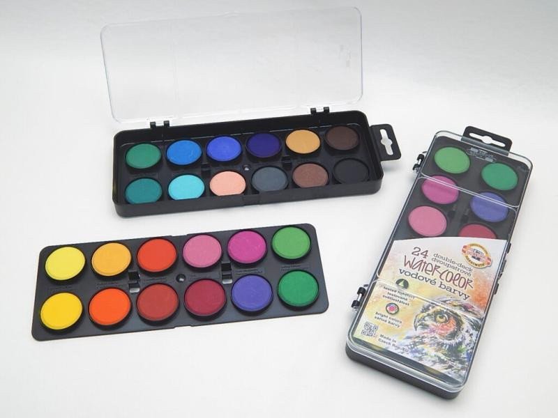 Koh-i-noor vodové barvy/vodovky obdélník černý 24 barev dvoupatrové