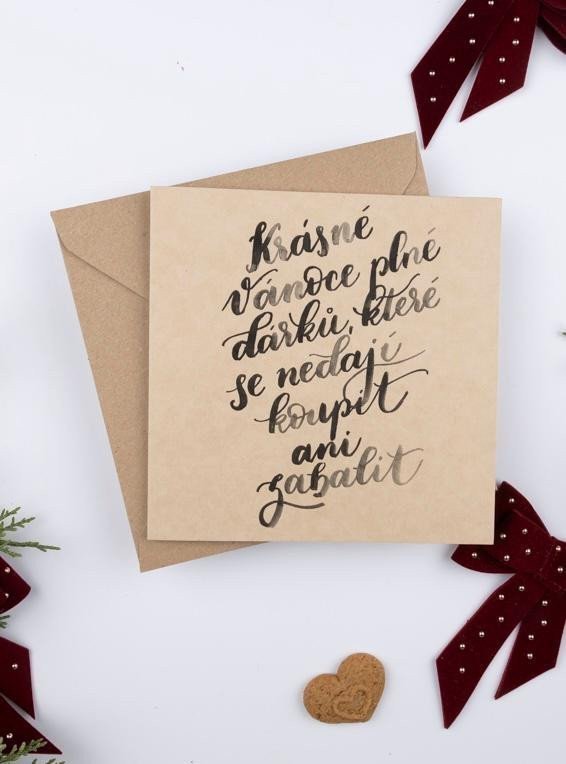 Be Nice EKO Christmas card made from recycled paper that perfectly captures what you feel for the other person. Do you have an original intangible gift? Present it with this original Christmas card. The card was beautifully handwritten by Czech artist Bára from Nikolajka. No text inside. Size: 15.5 x 15.5 cm