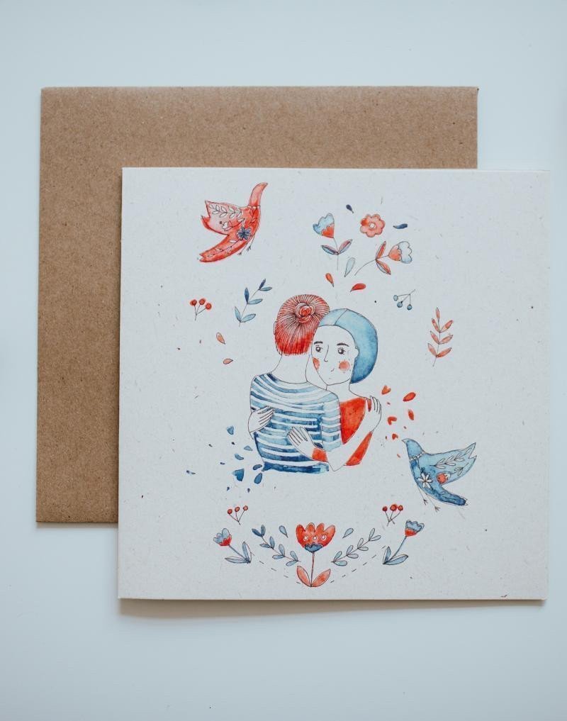 Be Nice EKO Card From Love – woman and man. Give your partner a beautiful card with original motifs of partners and their love. Inside the card, you can write a personal message to express your appreciation. The beautiful picture from the card can also be framed to keep a memory of the wonderful moments spent together. The card was illustrated by Czech artist Bára from Nikolajka. Size: 15 x 15 cm.