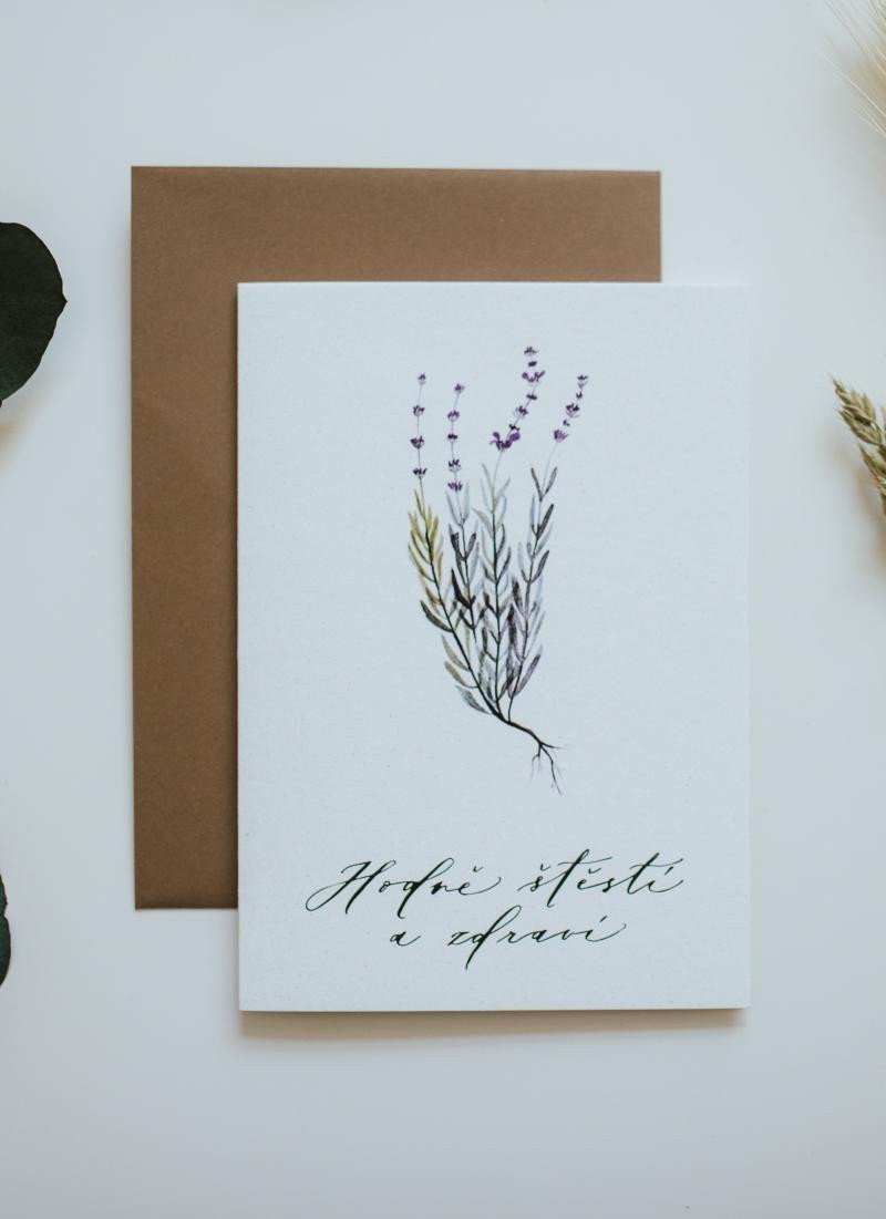 Be Nice Eco Card 'Wishing You Luck and Health' - featuring the original design of Czech herb lavender. The card was illustrated by Czech artist Bára from Nikolajka. Size: 12 x 17 cm.