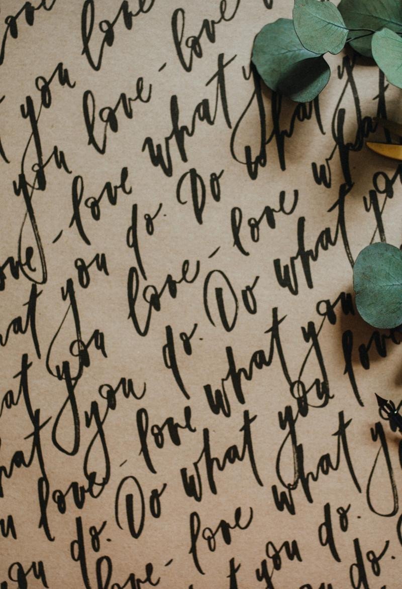 Be Nice EKO wrapping paper with the quote 'do what you love - love what you do' on brown paper. The original designs were created by Czech illustrator Bára from Nikolajka.