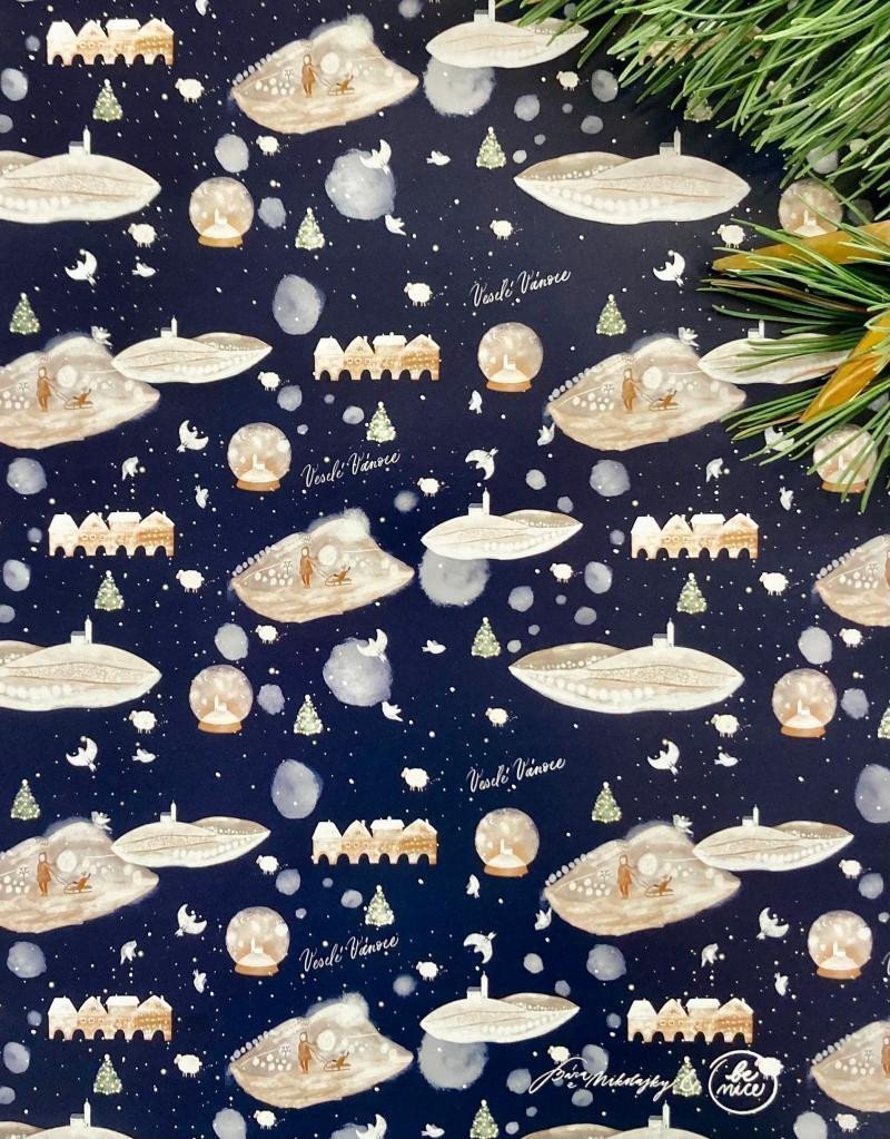 Be Nice EKO Heavenly Christmas wrapping paper. The mysterious Heavenly paper will enhance the magical atmosphere of the entire Advent season and highlight what Christmas is truly about. The papers are sturdy and feature a fine grid on the underside for easy cutting. The original designs were created by Czech illustrator Bára from Nikolajka.