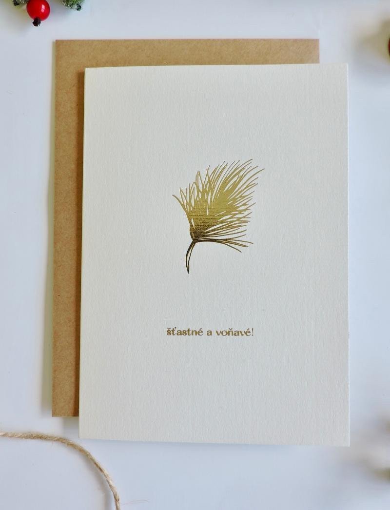 Be Nice EKO Přání vánoční V jehličí - světlé se zlatoražbou