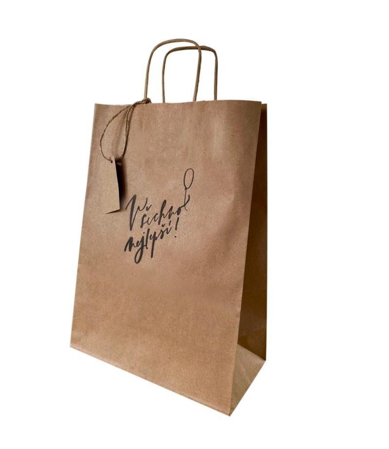 Be Nice natural gift bag with the inscription 'Happy Birthday' and a name tag. Dimensions 22 x 28 cm.