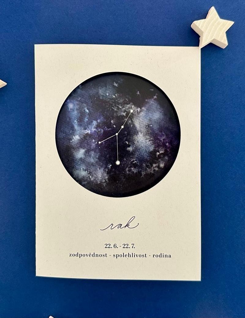 Be Nice EKO greeting card Zodiac Sign - Cancer. Do you believe that zodiac signs are a part of us and tell something about us? A beautiful card that carries the positive traits of the sign and is complemented by its own constellation. All this together with a lovely text and a unique design of a truly cosmic greeting. The card features a cut-out on the front page. The card was illustrated by Czech artist Bára from Nikolajka. Size: 12 x 17 cm.
