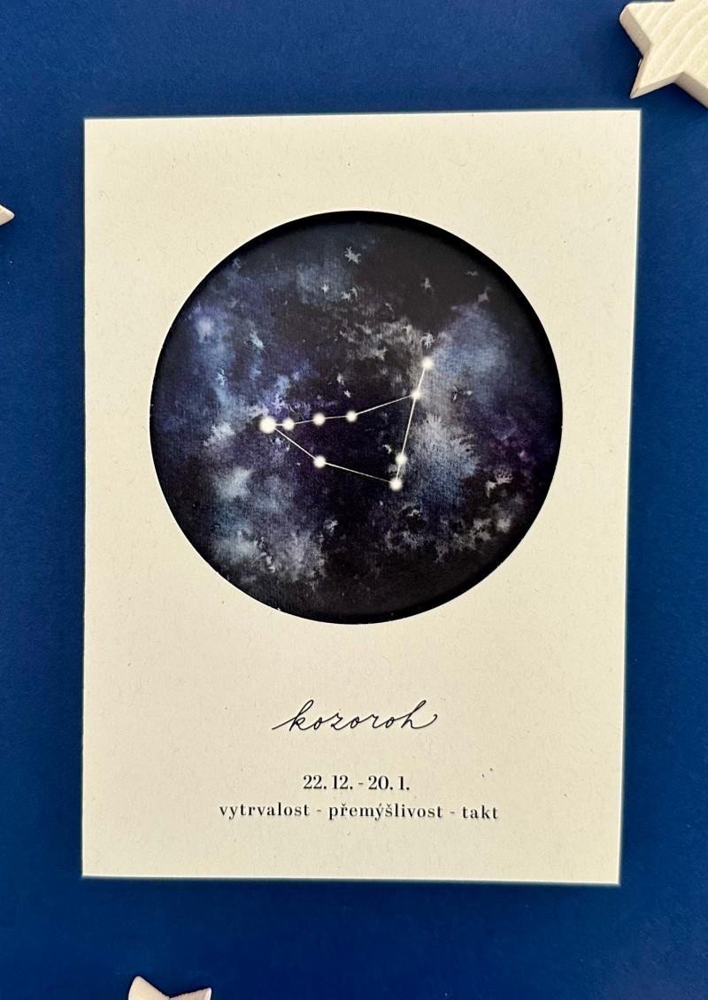 Be Nice EKO card Zodiac Sign - Capricorn. Do you believe that zodiac signs are part of us and tell something about us? A beautiful card that carries the positive traits of the sign and is complemented by its own constellation. All of this, along with beautiful text and a unique cosmic design of the card. The card has a cut-out on the front. The card was illustrated by Czech artist Bára from Nikolajka. Size: 12 x 17 cm.