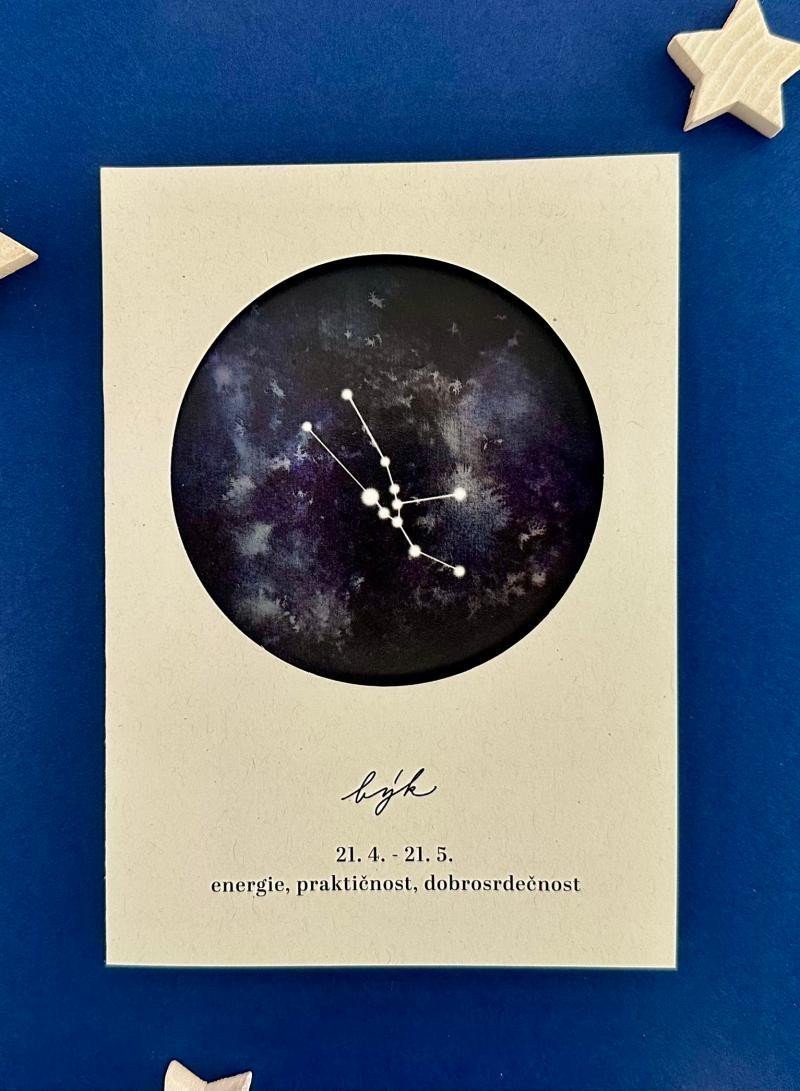 Be Nice EKO greeting card Zodiac Sign - Taurus. Do you believe that zodiac signs are part of us and tell something about us? A beautiful card that carries the positive traits of the sign and is complemented by its own constellation. All this together with beautiful text and a unique design of a truly cosmic card. The card has a cut-out on the front cover. The card was illustrated by Czech artist Bára from Nikolajka. Size: 12 x 17 cm.