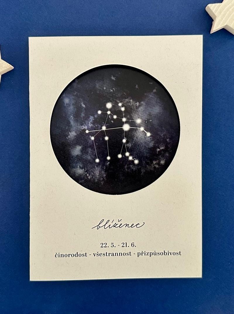 Be Nice EKO card Zodiac Sign - Gemini. Do you believe that zodiac signs are a part of us and tell something about us? A beautiful card that carries the positive traits of the sign and is complemented by its own constellation. All this along with beautiful text and a unique design of a truly cosmic card. The card has a cut-out on the front page. The card was illustrated by Czech artist Bára from Nikolajka. Size: 12 x 17 cm.