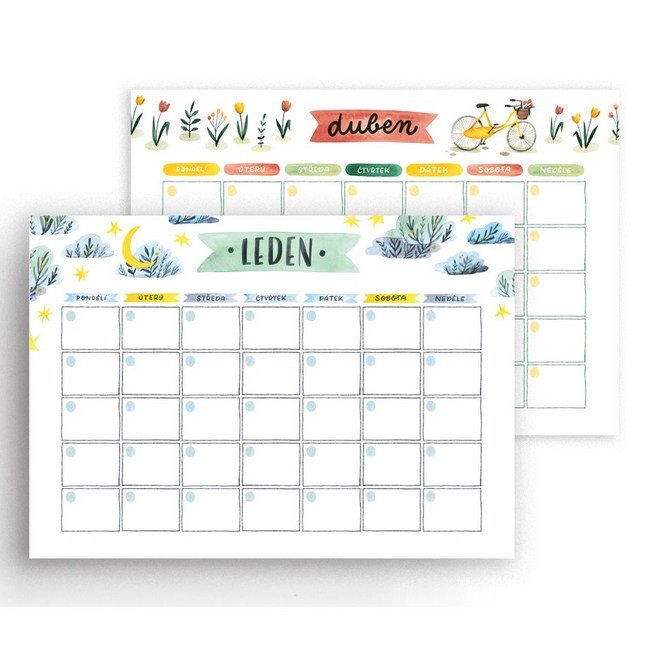 Monthly planner - an undated helper that will help you organize every month of your year without missing any important events. With 12 sheets, each adorned with an original illustration corresponding to the respective month, this planner will become not only practical but also a beautiful addition to your home or workspace. The A4 format provides ample space for writing down all your plans, appointments, school lectures, or even a first date. Since the sheets are not bound, you can always keep the current month in sight – whether on your desk, pinned to the fridge, or in any other way, so you don't miss anything important.