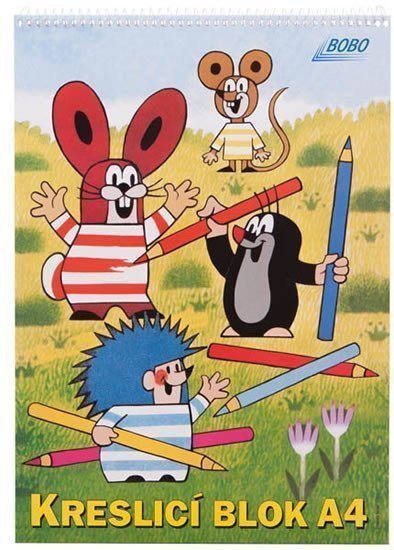 The drawing pad is bound with a metal spiral and features an image of the popular fairy tale character Krteček. The pad consists of 20 blank A4 sheets. The drawn sheets can be easily torn out of the pad.
