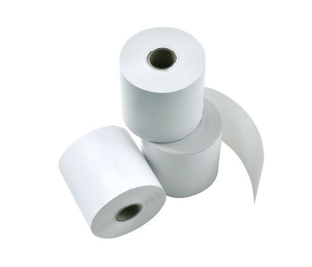 Pack of cash register thermal rolls measuring - width 57mm, diameter 60mm, core 17mm.